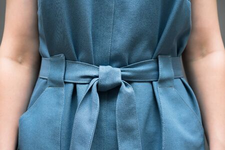 Blue dress with a belt texture background.
