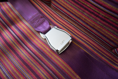 tension safety belts with mechanical locks. stretch textile slings hold the load