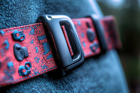 Close-up of a car seat belt with red and blue lights