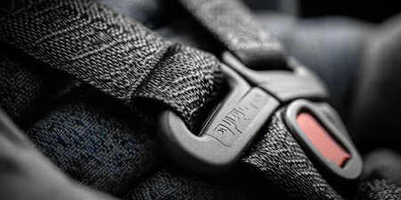 Close-up of a Car Seat Buckle Ensuring Maximum Safety for Children During Road Travel Adventures