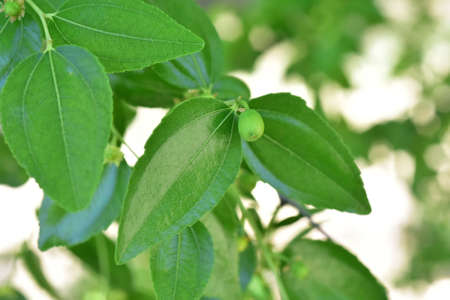Medicinal plants are known as Hairy Fig, Palmate Cleft Fig, Ficus hirta Vahl, colorful fruit on a blurred background