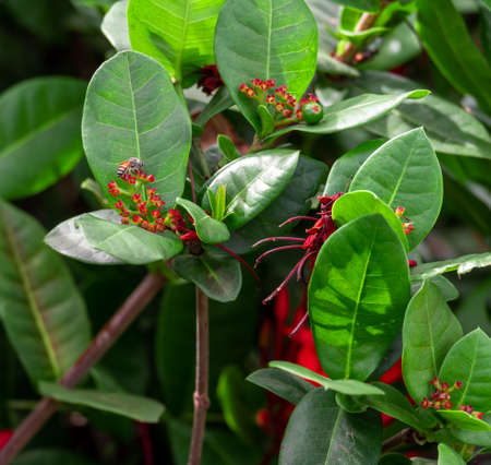 Shot of A wild colourful bug sitting on buds and flowers in the garden