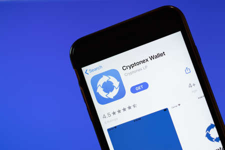 Moscow, Russia - 1 June 2020: Cryptonex Wallet app mobile logo close-up on screen display, Illustrative Editorial