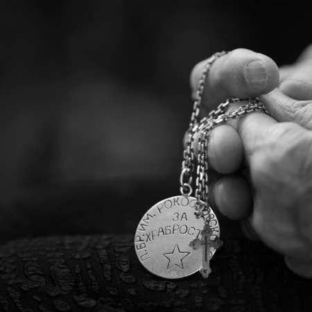 Order of the Second World War and a cross in the hands of the participant.
