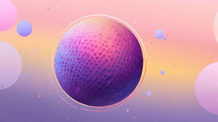 3d illustration of an abstract background with a sphere and colorful circles