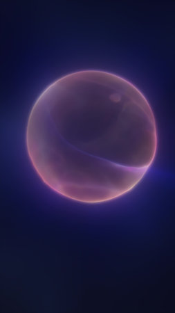 Soft glowing purple sphere floating in a dark abstract cosmic environment.