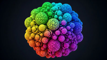 Abstract 3d rendering of multicolored molecule. bacteria cell