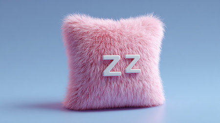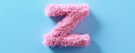 Pink fur pillow with letter Z on blue background. 3d rendering
