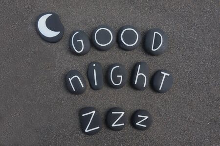 A smooth, dark stone rests in a quiet space, emitting a soft, warm glow from the letters 'ZZZ'.