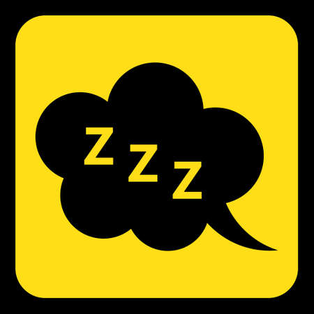 yellow rounded square information road sign with black ZZZ speech bubble icon and frame
