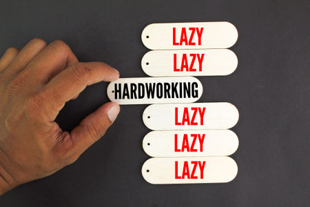hand choose the word diligent among the word lazy. the concept of hardworking and lazy.