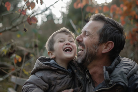 Happy father and his baby son sharing laughter and enjoying a joyful moment, celebrating their loving bond and family connection