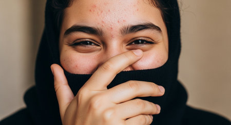 Portrait of teenager with acne showing confidence and acceptance