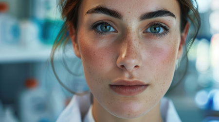 A close up of a woman with freckles on her face, AI