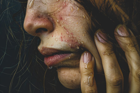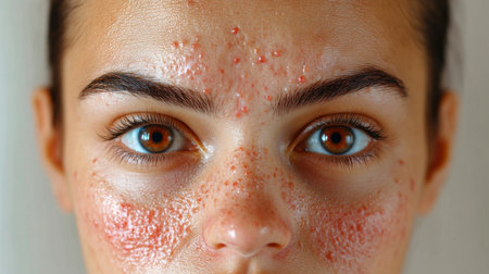 A woman with a lot of acne on her face, AI