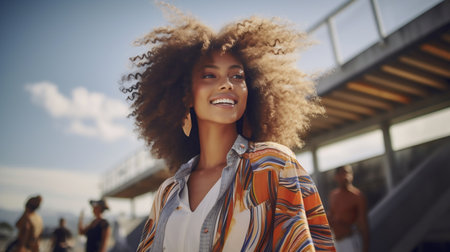 Portrait of a beautiful young African American woman with Afro hairstyle, outdoors.