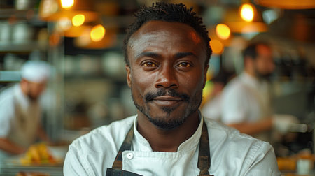 Portrait of a smiling chef standing in the kitchen of a restaurant