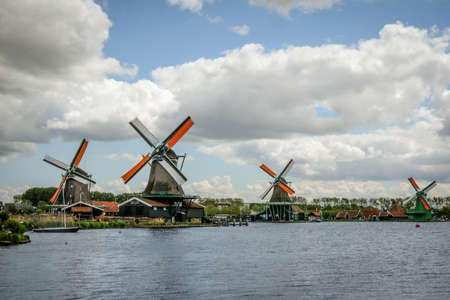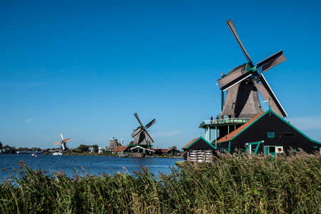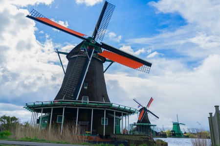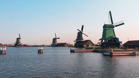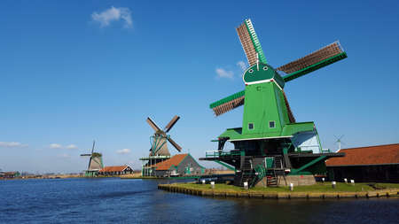 Windmills in Zandaam Zaanse Schans village near Amsterdam, Netherland