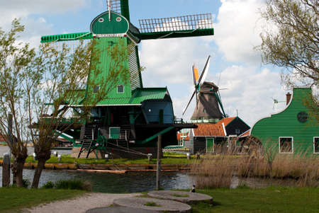 Zaanse schans, Holland - Traditional Dutch windmills with canal close