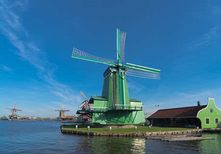 Windmills at Zaanse Schans in Holland. Zaandam, Nether