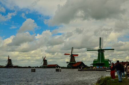 Zaanse Schans, Netherlans, 20June 2016 : Visiting tourists to the Dutch windmills, the Zaanse Schans Tourist Village near Amsterdam, Netherlands
