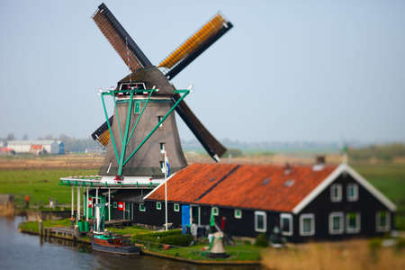Picturesque windmill in Zaanse Schans, The Netherlands