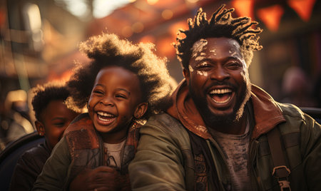 Joyful African man and his happy young son spending quality time together at a playground, capturing the essence of family bonding and happiness.