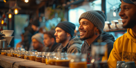 Group people leaning and education workshop for classes barista coffee in cafe room. Preparing teacher meeting and training service about hospitality and make coffee. Education Concept