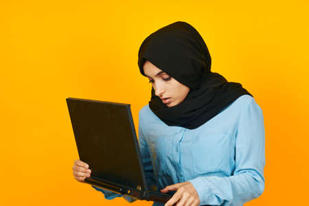 Muslim laptop posing technology internet studio lifestyle