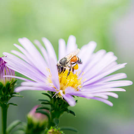 Bee on a flower collecting nectar. Shallow depth of field.
